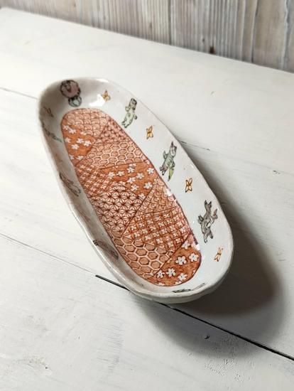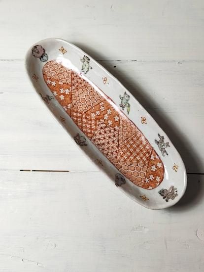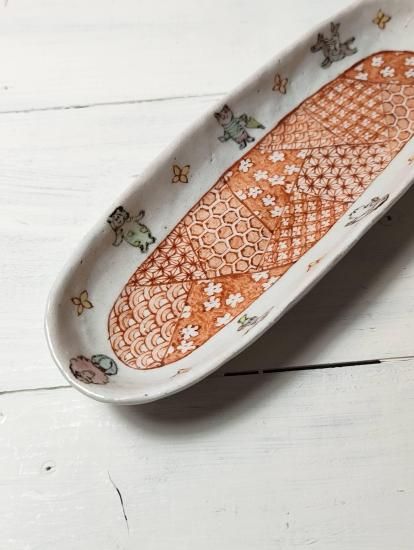 内田裕子 9−7(2) 長楕円中皿 お伽の人々