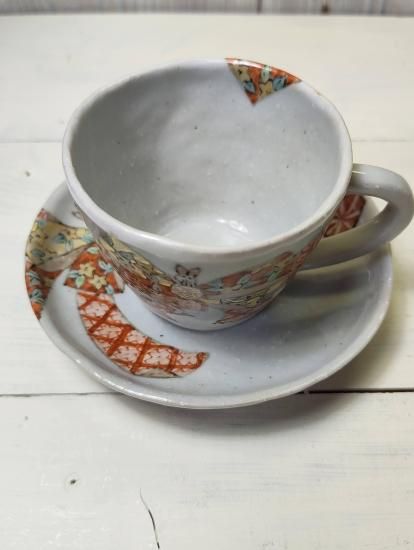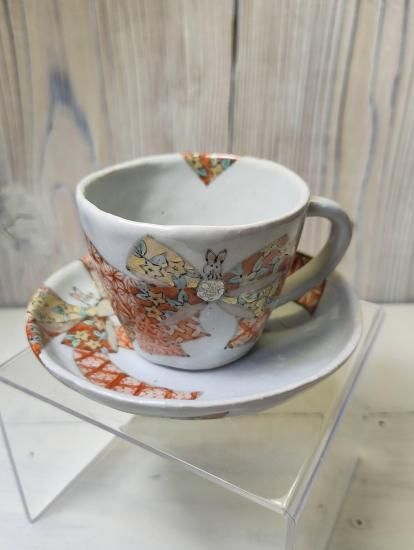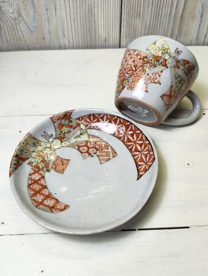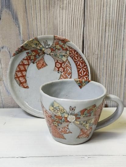 艶やかな金彩赤絵顧問のリボン結びと小さなうさぎのC/S