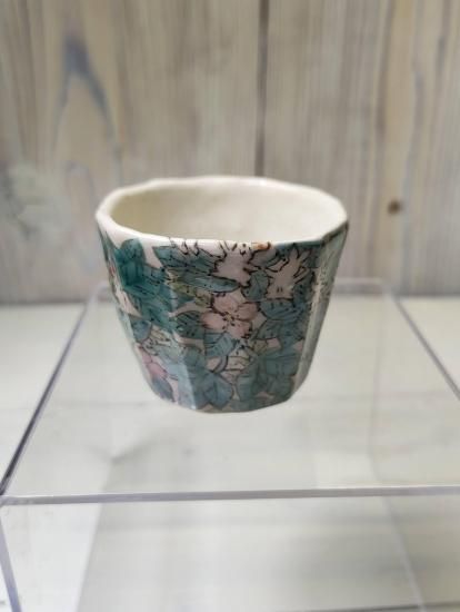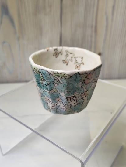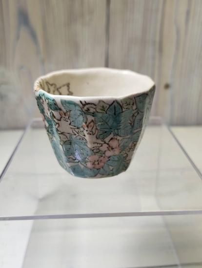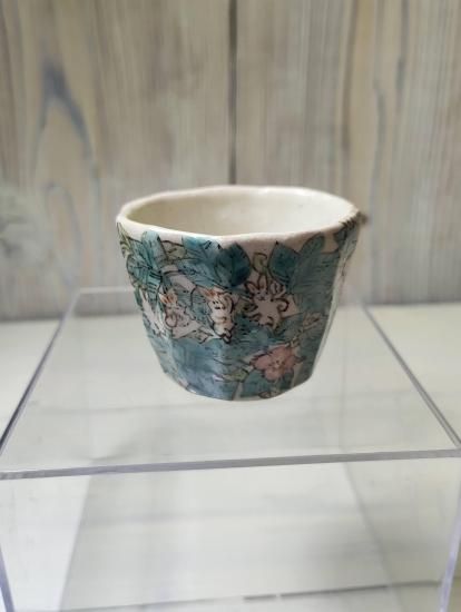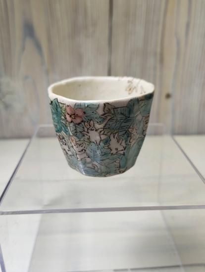 内田裕子 9−30 面取ぐい呑大 うさぎのダンス唐草